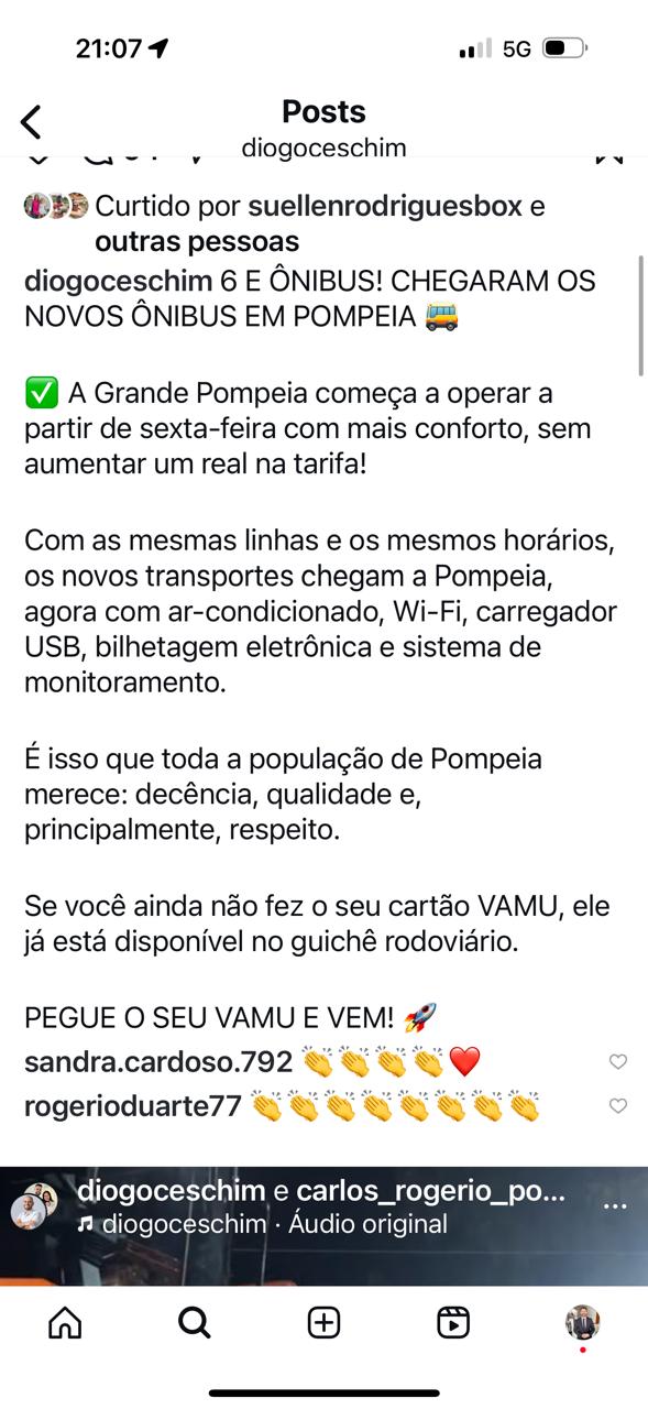 “Pegue o seu Vamu e vem!”. Foi com essa frase que o prefeito de Pompéia, Diogo Ceschim (Podemos) usou como recurso discursivo para atrair atenção da população e usuários do transporte coletivo – como lacração, mas sem relações mais efetivas com a realidade.