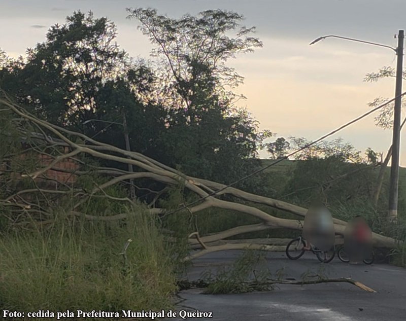 Neste sábado (10), por volta das 15h40, a Defesa Civil do estado de São Paulo alertou para chuva forte avançando por Tupã, Pompéia e Marília e atingia municípios vizinhos. “Tem raios e ventos. Tenha cuidado”. Uma moradora de Queiroz disse que o vento durou pouquíssimo tempo, mas o suficiente para provocar pânico e muitos danos. “Um vento em forma de redemoinho foi muito rápido. Parecia que os vidros da minha casa iriam estourar. Ficamos muito assustados”, disse.O evento meteorológico severo foi marcado por ventos com rajadas muito fortes, intensa chuva e causou destruição na cidade. Nas fotos cedidas pela prefeitura de Queiroz verifica-se a rede de energia danificada, queda de fios de alta tensão, transformador e postes.