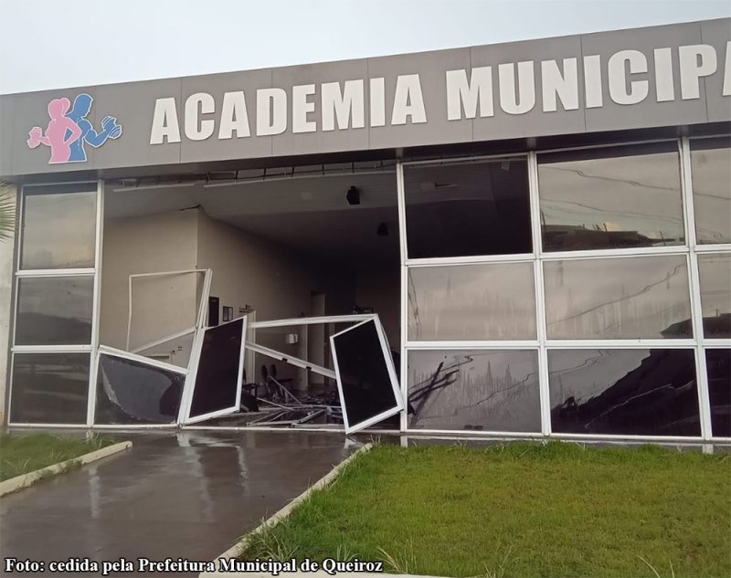 A tempestade destruiu também a sede da academia municipal e Fundo Social de Solidariedade. Árvores caíram e estruturas metálicas voaram. Queiroz tem 3.500 habitantes.